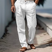 More information about Men's Linen Pants Trousers Dress Pants Summer Pants Beach Pants Front Pocket Straight Leg Plain Comfort Breathable Full Length Formal Business Holiday Fashion Basic White Navy Blue