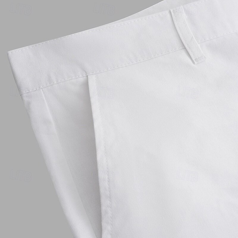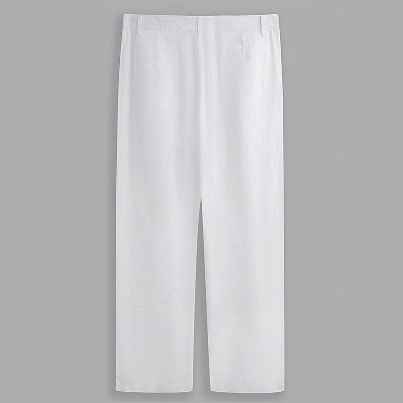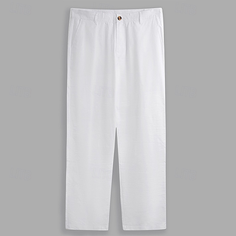 Highlights [Fabric] : Constructed from a premium linen cotton blend, these men's pants offer a flexible and breathable feel, making them ideal for seasonal transitions in spring and fall. The lightweight material ensures comfort and durability, perfect for day-long wear. [Fit] : Designed in a regular fit, the pants provide a relaxed yet stylish silhouette that ensures ample comfort and ease of movement. The classic straight-leg cut embodies a timeless appeal suitable for various occasions. [Design Highlights] : Featuring a practical front pocket, a mid-waist design, and a secure zipper with button fly closure, these pants balance functionality and style. Available in versatile shades like white, sky blue, navy blue, and khaki, they offer multiple styling options. The subtle texture of the fabric further enhances their refined look. [Occasions] : These pants are an excellent choice for both formal and casual settings. Whether dressing for a business meeting or enjoying a holiday at the beach, their versatile design supports a range of occasions with sophistication. [Size Range] : Available in a broad size range from S to 3XL, these pants cater to varied body types, ensuring a comfortable fit for every wearer.