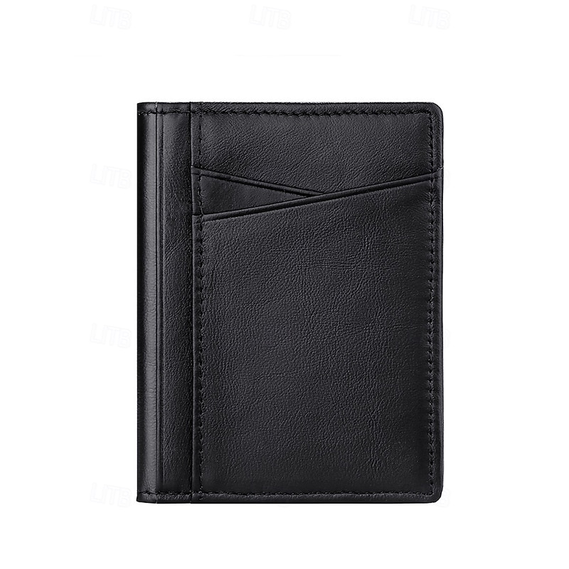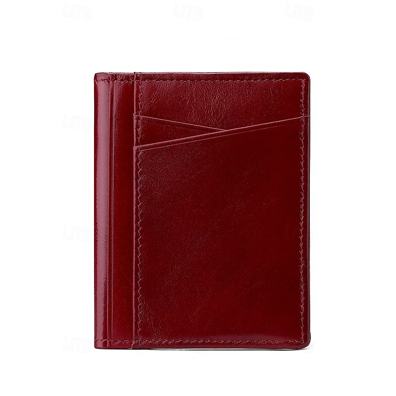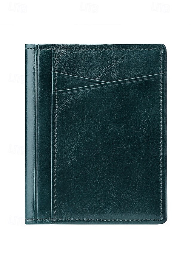 Men's RFID Blocking Wallet, Premium Cowhide Leather, Slim Design with Multiple Card Slots and ID Window – Secure and Stylish Wallet for Everyday Use Wine Black Dark Green 5