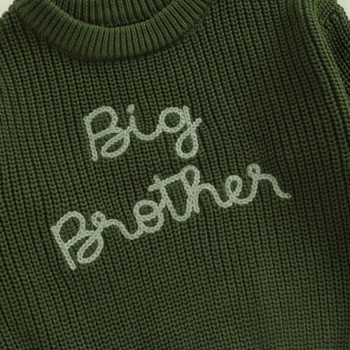Big Brother Little Brother Matching Sweaters Toddler Boy Letter Crewneck Knitted Pullovers Tops Kids Fall Outfit (Big Brohter Sweater Green,12-18 Months) 7