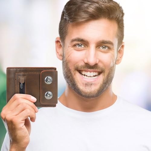 HOT ! Men's Wallet, PU Leather Wallets with 4 Card Slots, Zippered Coin Pocket, and 1 ID Card Window, Bifold Wallets for Men with Zippered Cash Slot (Black)
