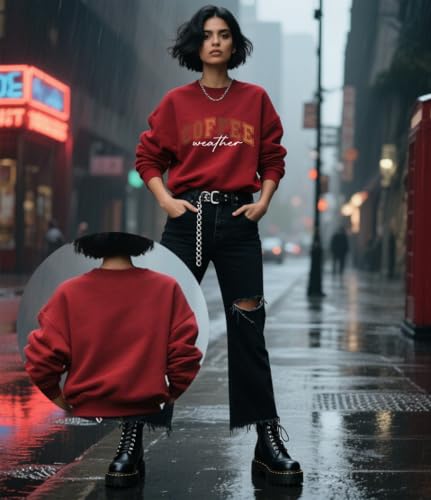 Coffee Weather Sweatshirt, Coffee Weather Shirt, Coffee Weather Lettering Graphic Long Sleeve Crewneck Tops 5