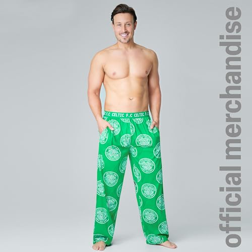 Fabric type: 100% CottonCare instructions: Machine WashOrigin: ImportedUpgrade your sleepwear with these Celtic FC pyjama bottoms for men. Perfect for lounging in on the weekend, watching the football on the sofa or getting a comfy night's sleepThese men's pyjama bottoms are available in sizes ranging from S-3XL to suit men and teens. See the images for the sizing chart to get the perfect fit and kick off your loungewear collectionThese mens lounge pants are soft, breathable and kind to the skin with 100% Cotton material. Designed for comfort with an elasticated waist, ensuring a comfortable and secure fit all nightThese pyjamas for men are perfect for relaxing on the weekends or after work, wearing in the evening to watch the football, or getting a comfy night's sleepLooking for Celtic Mens Gifts? These sophisticated mens PJs are officially licensed Celtic merchandise and make a great football fathers day gift, birthday gift or Christmas gift. They're sure to be a hit with any true fan! Perfect for everyday use. premium materials and excellent craftsmanship ensure long-lasting durability.