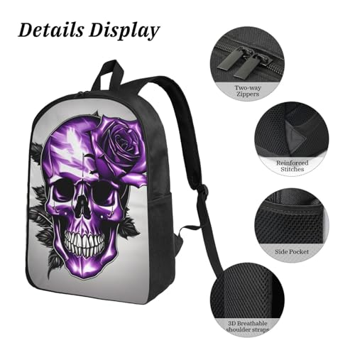 • Laptop Compatible of Backpack: The Lightweight Purple Rose and Skull print Bookbag includes a spacious compartment that can accommodate a 15-inch laptop, making it suitable for both work and leisure activities.