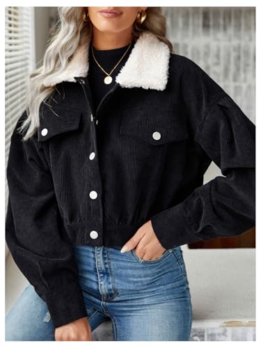 HOT ! SOLY HUX Women's Corduroy Jacket Fuzzy Collar Button Down Long Sleeve Cropped Fall Jacket Outerwear