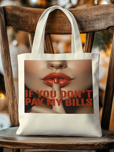 HOT ! Canvas Tote Bag Red Lip If You Don't Pay My Bills Reusable Grocery Shopping Bag,Shoulder Tote Bags for Women Travel Work Gym
