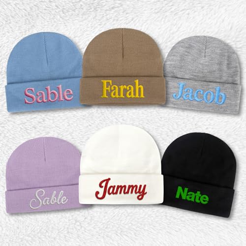 • 【Custom Baby Beanie Hats with Name】These personalized toddler hats feature exquisite embroidered name designs. Easily create custom hats for your baby and yourself by adding names to our customizable hats. This knit hat makes an ideal personalized gift or everyday accessory.