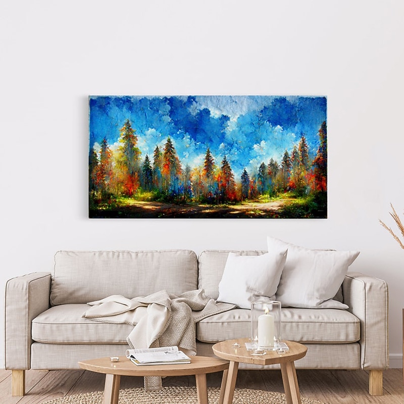 More information about Handmade Oil Painting Canvas Wall Art Decoration Modern Colorful Mysterious Forest Landscape for Home Decor Rolled Frameless Unstretched Painting