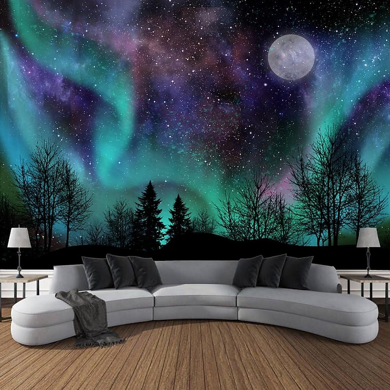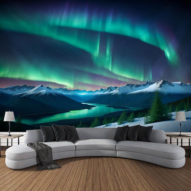 HOT ! Nature Hanging Tapestry Wall Art Large Tapestry Mural Decor Photograph Backdrop Blanket Curtain Home Bedroom Living Room Decoration Nothern Light Aurora
