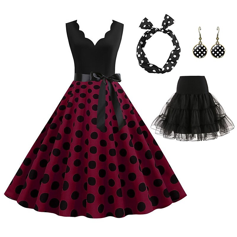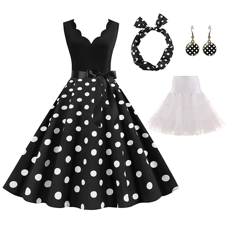 Why Choose Retro Vintage 1950s Grease Outfits Rockabilly Petticoat Hoop Skirt A-Line Dress Tutu Polka Dot Fancy Dress Women's Kings Day Party / Evening Masquerade Adults' Dress Earrings Headwear Spring?