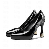 More information about Women's Burgundy Patent Leather Platform Heels with Glitter Accent and Block Heel – Elegant Party or Wedding Shoes