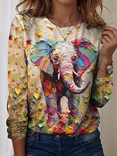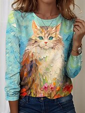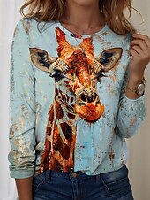 More information about Women's T shirt Crew Neck Long Sleeve Tunic Graphic Animal Vintage Stylish Modern Regular Tops Daily Print Yellow Blue Sky Blue Fall