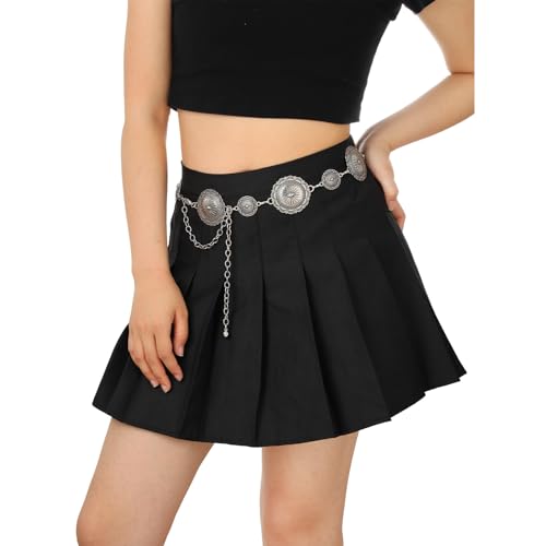 HOT ! XZQTIVE Silver/Gold Concho Chain Belt for Women - Western Cowgirl Belt for Dresses, Jeans, Country Concert Outfit