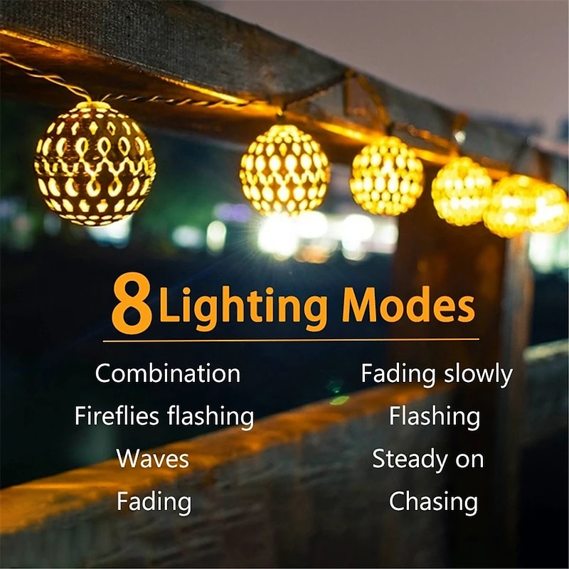 More information about Solar Moroccan String Lights Globe Fairy Lights Outdoor Waterproof 8 Lighting Modes 5m 7m 10m String Lights 20/30/50 LEDs EL Warm White RGB White Creative String Lights Holiday Lights Party Wedding