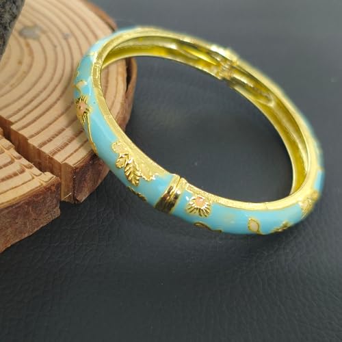 HOT ! Cloisonne Bracelet For Women, Chunky Bangle Trendy Cute Flower Enamel Bangles Multi Tone Engraved Cuff Gold Plated Bracelets Stackable Wife Jewelry Friendship Gift
