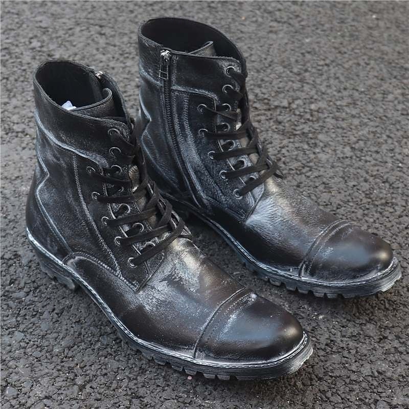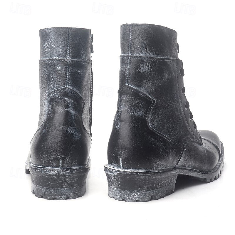 Men's Black Cowhide Combat Boots – Durable Lace-Up Military Style Leather Footwear for Outdoor Hiking, Motorcycle Riding and Casual Streetwear 4