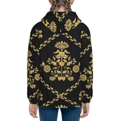 Sunflower In Gold And Black Kids Pullover Hoodies Boys Zip Up Sweatshirts Girls Athletic Clothes with Pocket 1