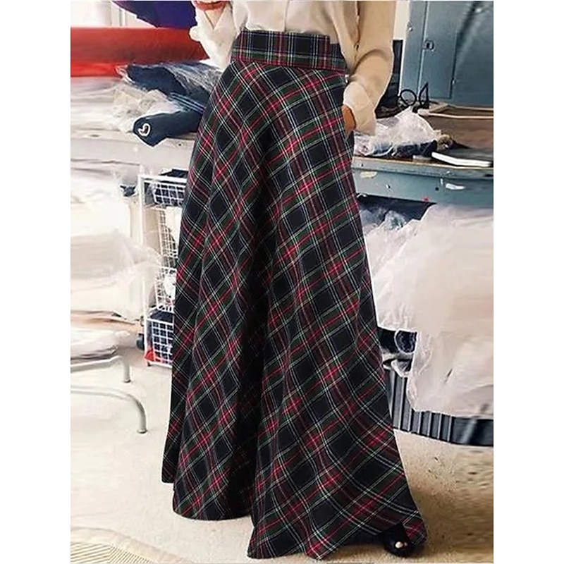 More information about Women's Skirt A Line Maxi Skirts Pocket Print Plaid Street Daily Winter Fashion Casual Black Red Green