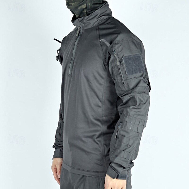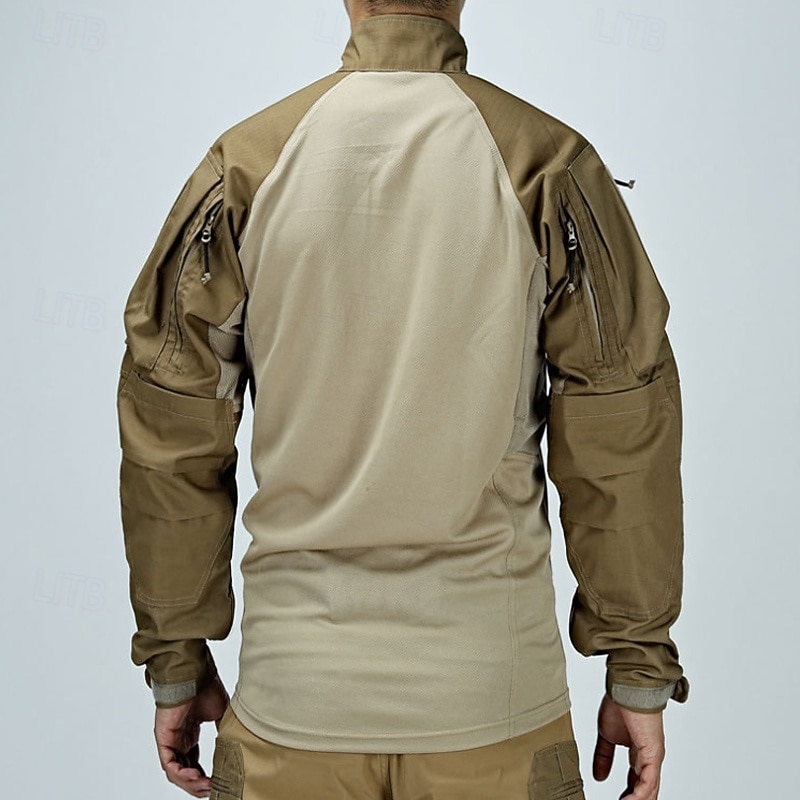 More information about Men's Combat Shirt Hiking Shirt Tactical Military Shirt Long Sleeve Quarter Zip Top Outdoor Breathable Soft Polyester Patchwork Black Army Green Rough Black Gym Climbing Camping / Hiking / Caving