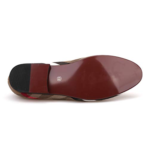 HI&HANN Plaid Canvas Loafers Men 's Casual Shoes Smoking Slipper 5