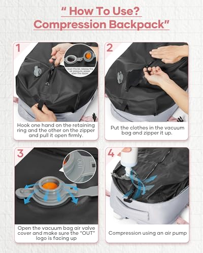 Large Vacuum Backpack Travel with Pump, 18×14×8 Personal Item Travel Bag Flight Approved, Carry on Backpacks with Dry Wet Seperation, 15.6 inch Laptop Backpack suitable for Casual Business, Grey 4