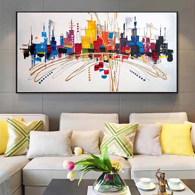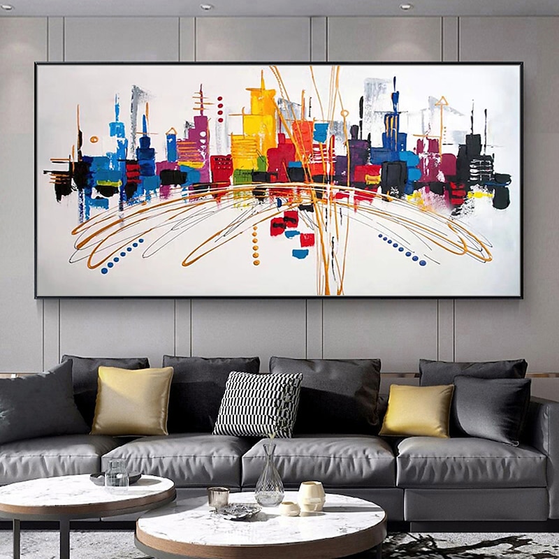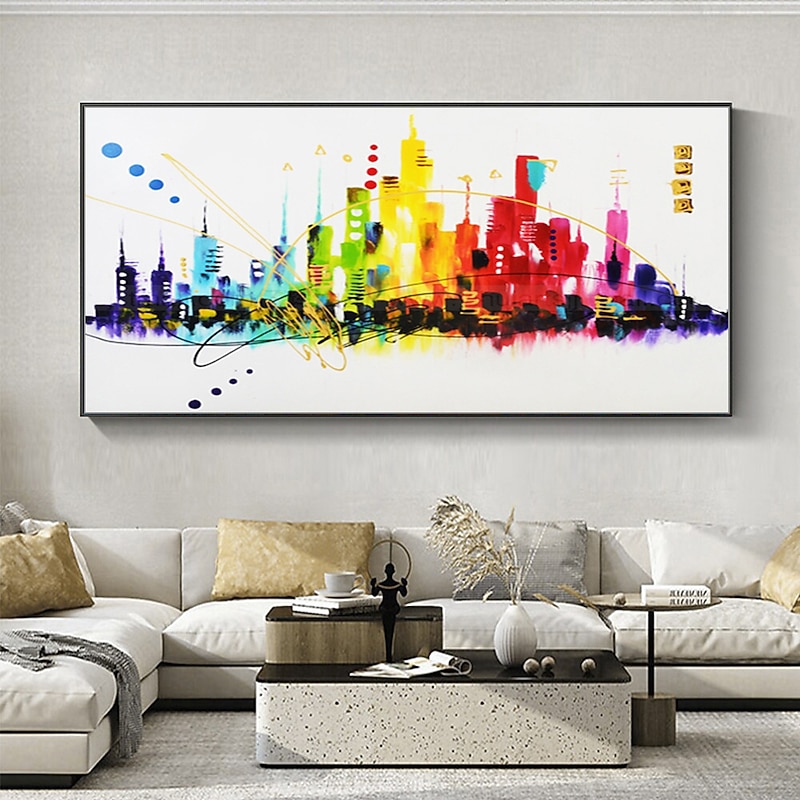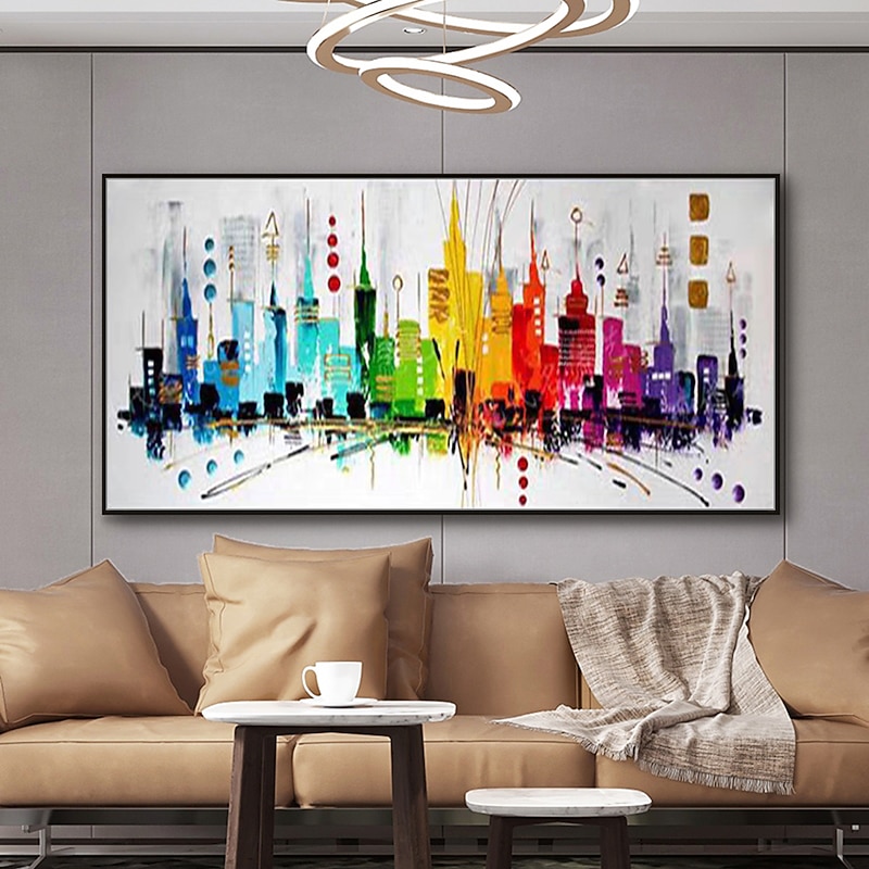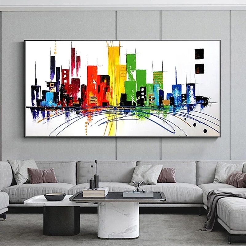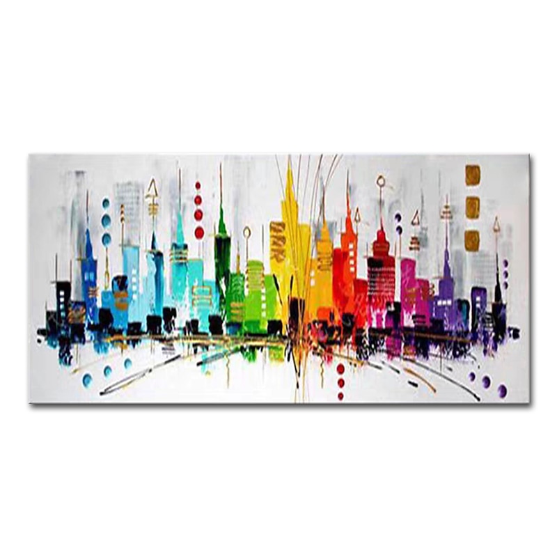 More information about Mintura Handmade Colorful City Landscape Oil Paintings On Canvas Wall Art Decoration Modern Abstract Picture For Home Decor Rolled Frameless Unstretched Painting