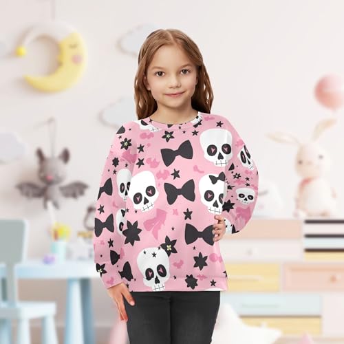 JUNZAN Halloween Spooky Skeleton Stars Pink Big Girls Hooded Sweatshirt Long Sleeve Hoodies for Girls Sports 4T 5