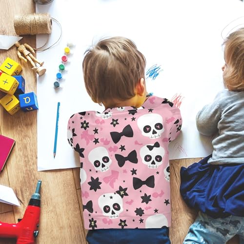 JUNZAN Halloween Spooky Skeleton Stars Pink Big Girls Hooded Sweatshirt Long Sleeve Hoodies for Girls Sports 4T 1