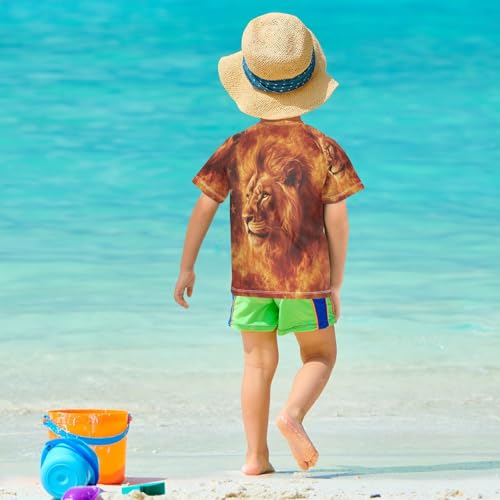 Boys Short Sleeve T-Shirts Fire Lion American Flag Rashguard Kids Swim Shirts Sun UPF 50+ 4