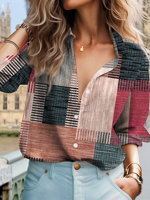 More information about Women's Shirt Button Down Blouse Plaid Stylish Casual Long Sleeve Shirt Button Down Blouse Collar Regular Tops Daily Buttons Print Red Blue Green Khaki Summer Spring