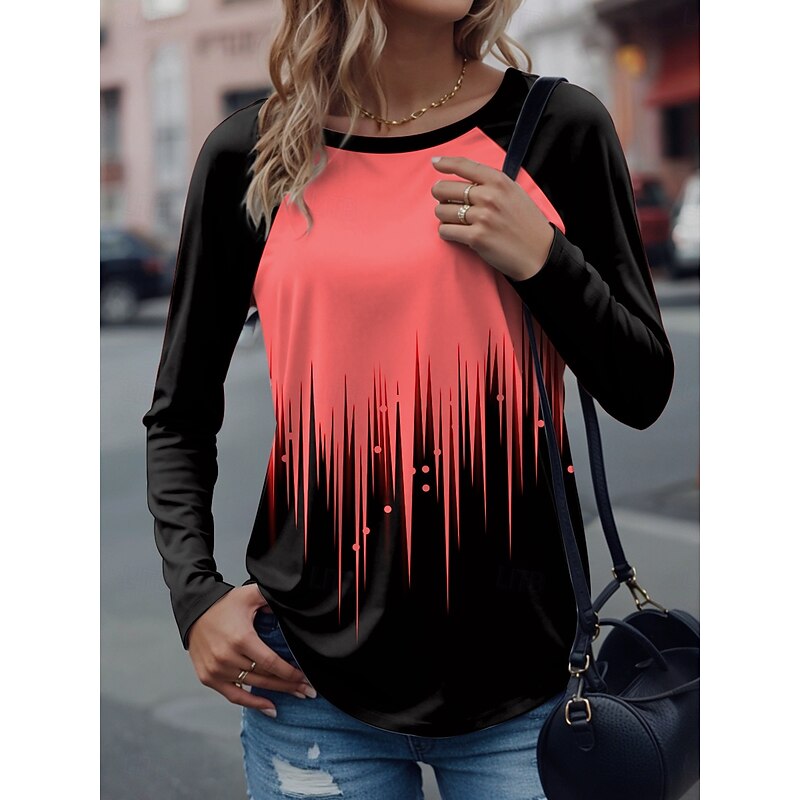 More information about Women's T Shirt Graphic Geometric Stylish Casual Long Sleeve Crew Neck Regular Tops Daily Weekend Print White Yellow Pink Blue Purple Spring Fall Winter