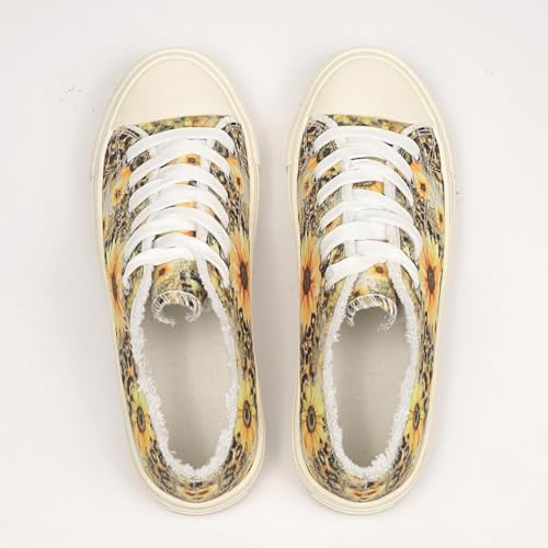Sunflower Canvas Tennis Shoes for Women Low Top Casual Sneakers for Women Lace Up Fashion Comfortable Walking Shoes,Fashion Canvas Slip on Shoes,Women's Comfort Plush Foam Sneaker 7