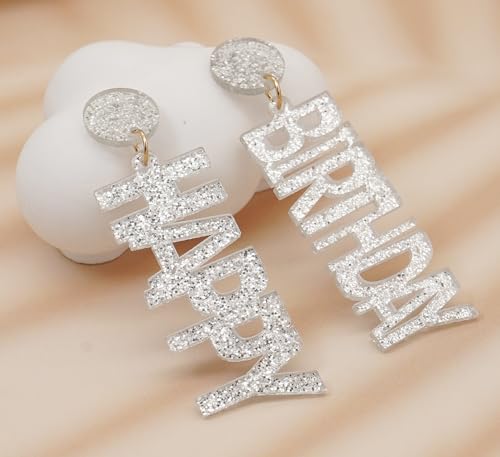 Happy Birthday Earrings Glitter Drop Dangle Earrings for Women