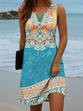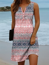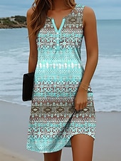 More information about Women's Mini Dress Sundress Shift Dress Off The Shoulder Dress Vacation Casual Beach Daily Holiday Regular Fit Graphic Geometric Sleeveless V Neck Pink Blue Sky Blue Brown Summer Spring