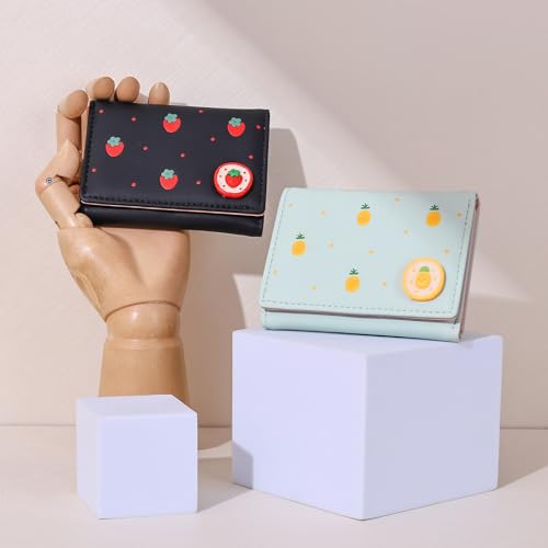 More information about Wallet Women, Small Fruit Trifold Wallets Woman, Cute Black Strawberry Girls Wallet Business Credit Card Change Holder Purse for ID Cards Cash Coin (Black)