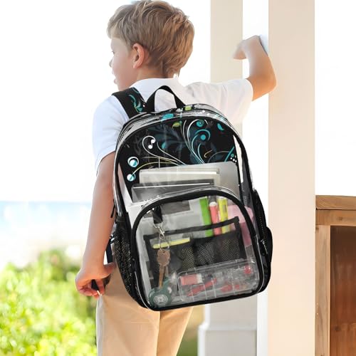 Music Notes Bird Black Clear Backpack Heavy Duty See Through Transparent PVC BookBag for Kids Boy Girl School Work 5