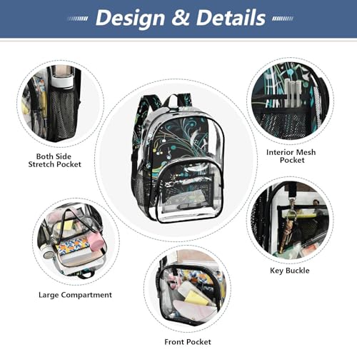 Music Notes Bird Black Clear Backpack Heavy Duty See Through Transparent PVC BookBag for Kids Boy Girl School Work 4