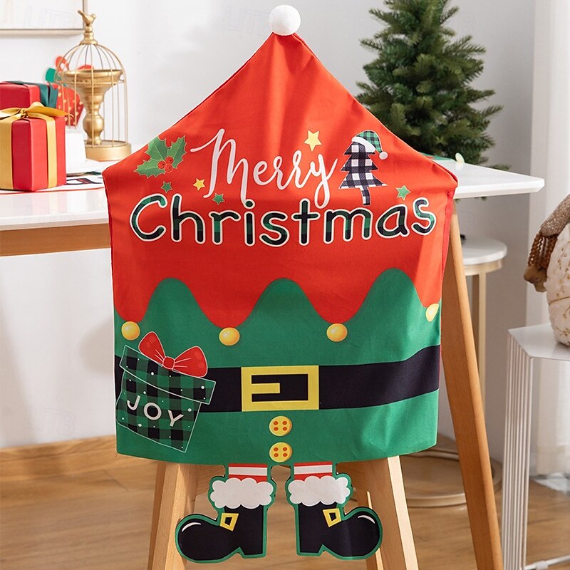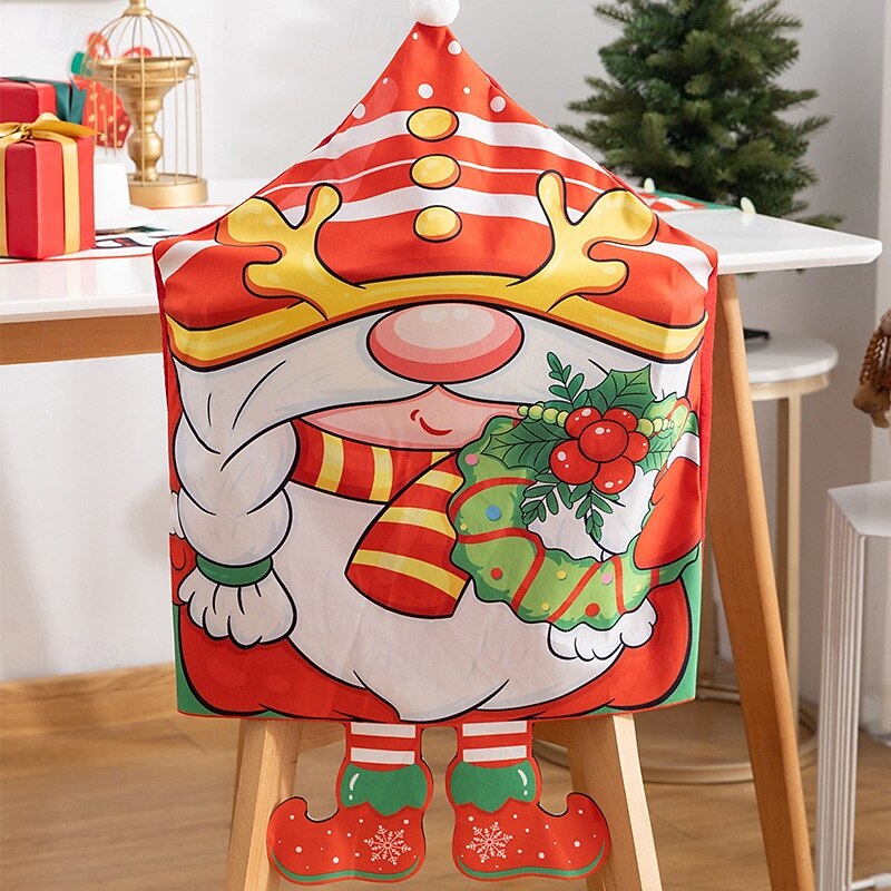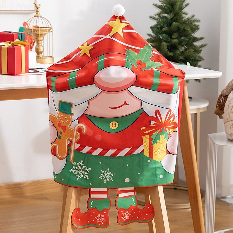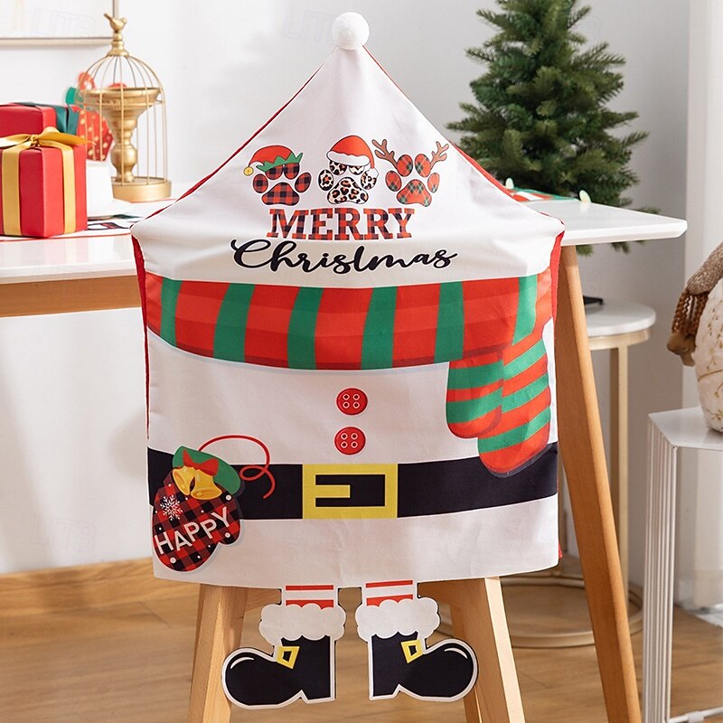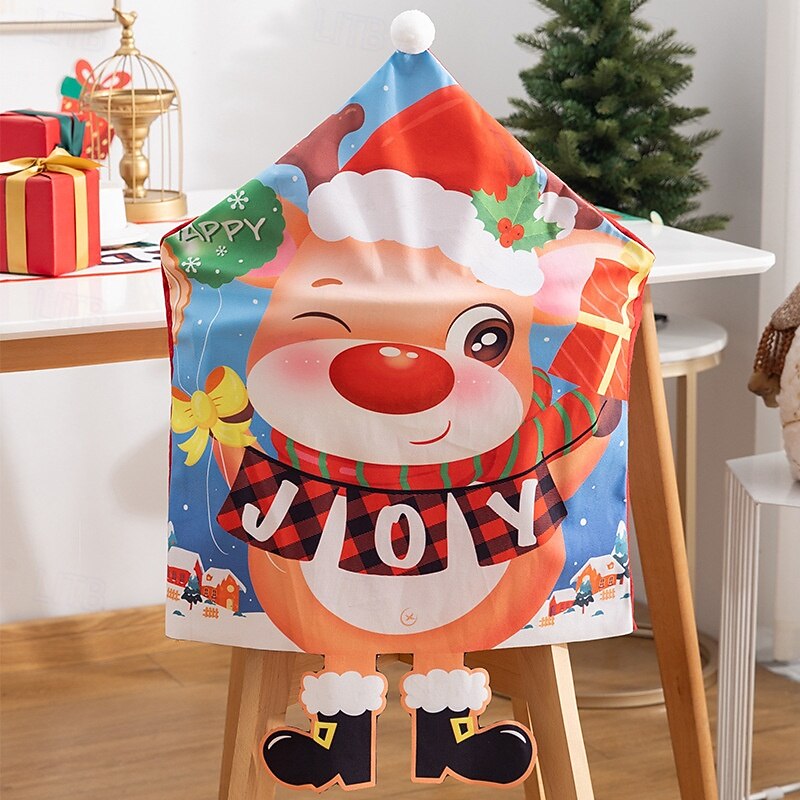 Christmas Chair Covers with Foot Design, Cute Snowman & Santa Claus Cartoon, Dining Room and Home Decoration, Festive Holiday Supplies for Xmas Party 17