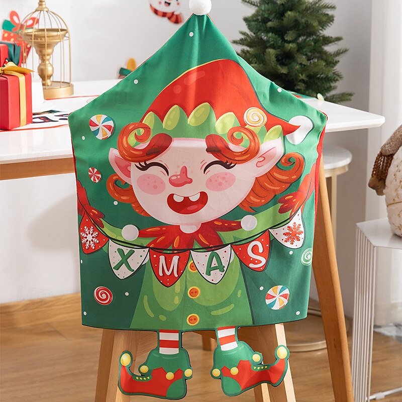 HOT ! Christmas Chair Covers with Foot Design, Cute Snowman & Santa Claus Cartoon, Dining Room and Home Decoration, Festive Holiday Supplies for Xmas Party
