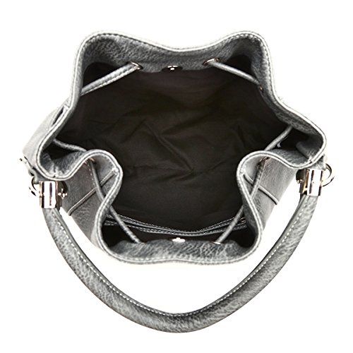 • Secure your belongings in this bucket style bag with its dragstring magnetic snap closure | Spacious with its single compartment fabric lined interior with wall zippered pocket | An adjustable extra strap to use as a one shoulder oblique cross