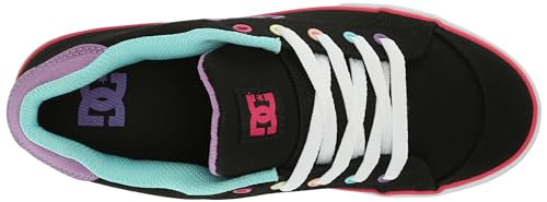 DC Girls Unisex-Child Chelsea Low Skate Shoe, Black/Multi Stripe, 12 Little Kid 7