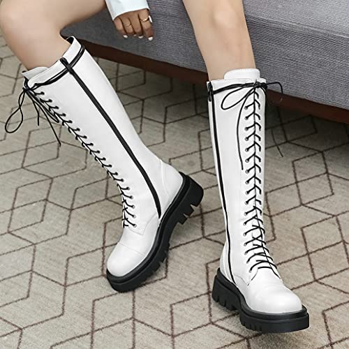 Meefit Women Goth Knee High Platform Boots Lace Up Chunky Heel Combat Tall Boots 7
