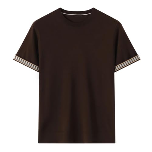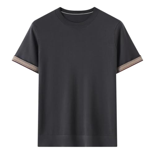 Men’S Slim Fit Lyocell Knitted Pullover Sweater Short Sleeve Round Neck Casual Stripe Edge Top Tee 5