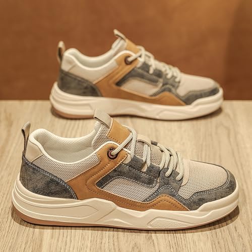 Men's Fashion Leather Breathable Mesh Mid Top Lace Up Platform Sneakers Casual Lightweight Non Slip Round Toe Driving Walking Jogging Tennis Training Shoes