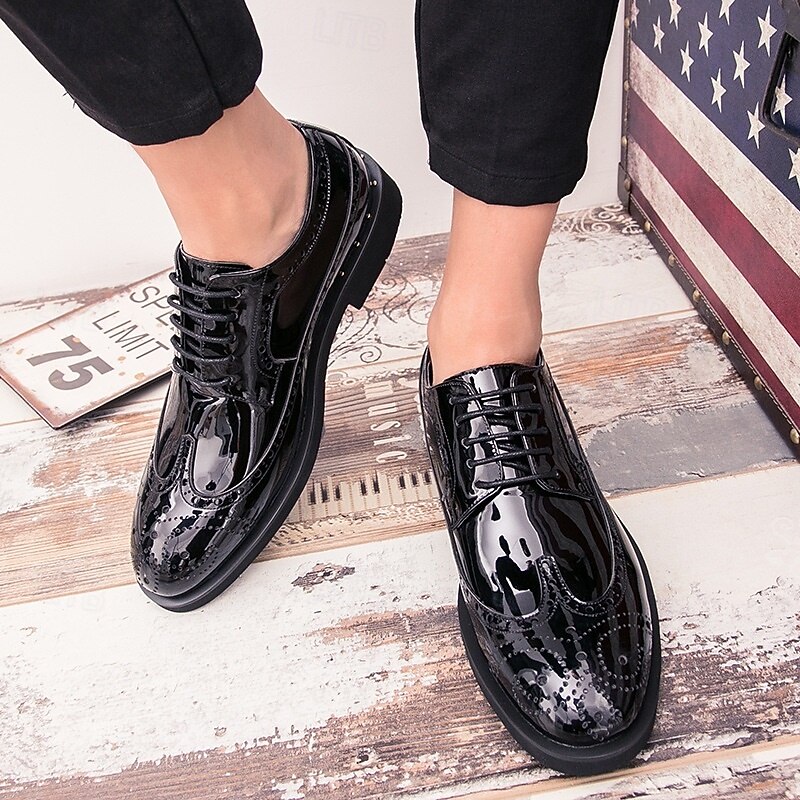 HOT ! Men's Silver Metallic Oxford Brogue Shoes - Shiny Lace-Up Dress Shoes with Rugged Sole for Formal Events and Parties