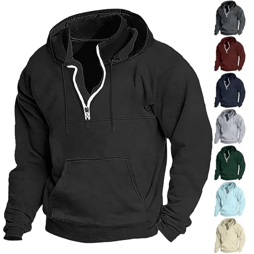 HOT ! Tactical Military Hoodies for Men 1/4 Zip Mock Neck Pullover Casual Long Sleeve Classic Sweatshirt Tops with Pocket