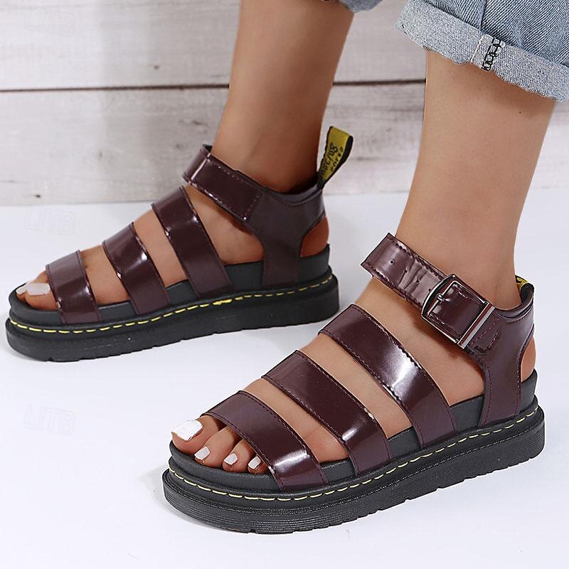 HOT ! Women's Sandals Gladiator Sandals Roman Sandals Fisherman Sandals Outdoor Daily Flat Heel Open Toe Casual Minimalism Faux Leather Wine Black White