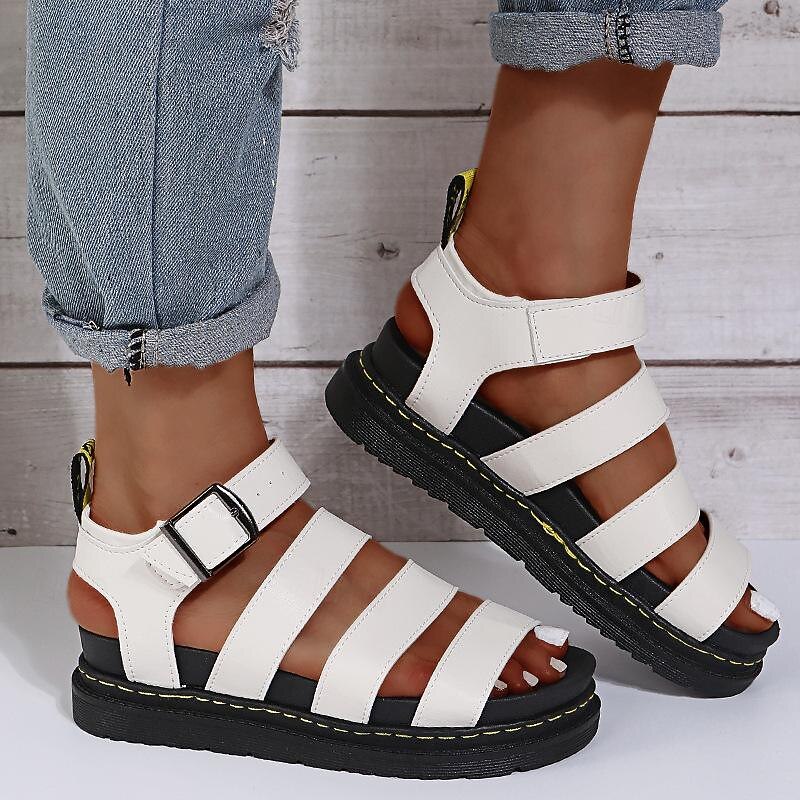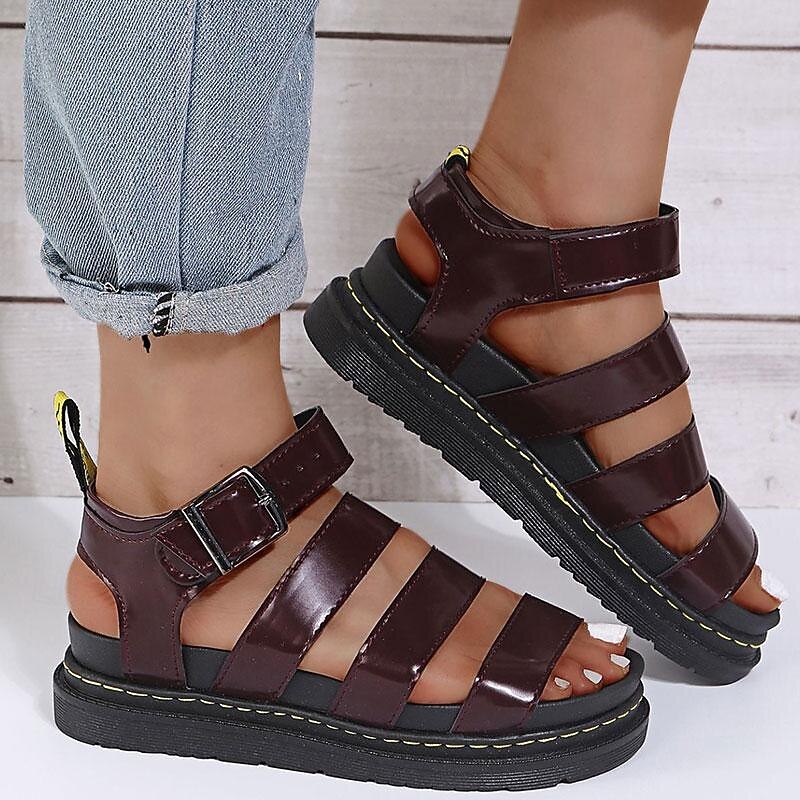 Highlights [Fabric] : Crafted from high-quality faux leather, these women's sandals offer durability and a sleek finish, perfect for spring and summer wear. The synthetic leather lining enhances comfort, providing a soft touch against your skin. [Design & Fit] : These sandals feature a modern gladiator style with multiple straps for a secure fit, and an open toe design perfect for warmer days. The adjustable buckle closure at the ankle allows for a customizable fit, adding to the overall comfort. [Design Highlights] : Boasting a striking and elegant gladiator design, these sandals are enhanced with a flat heel for easy wear. The thick, cushioned rubber sole ensures excellent support throughout the day, while the simplicity of the design adds a touch of minimalistic elegance to any outfit. [Occasions] : Ideal for daily wear or outdoor adventures, these sandals are versatile enough for both casual and semi-formal occasions. Whether you're heading to a weekend gathering or exploring on a vacation, they seamlessly add an edge of sophistication to your summer wardrobe. [Size Range] : Available in a variety of sizes ranging from US5.5/EU35 to US10.5/EU42, these sandals cater to diverse fitting needs. Please refer to the size chart for guidance to achieve the perfect fit.