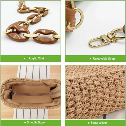Straw Bag for Women, Lightweight Woven Straw Shoulder Bag, Summer Handmade Beach Tote with Chain, Eco-Friendly Vacation Purse 6
