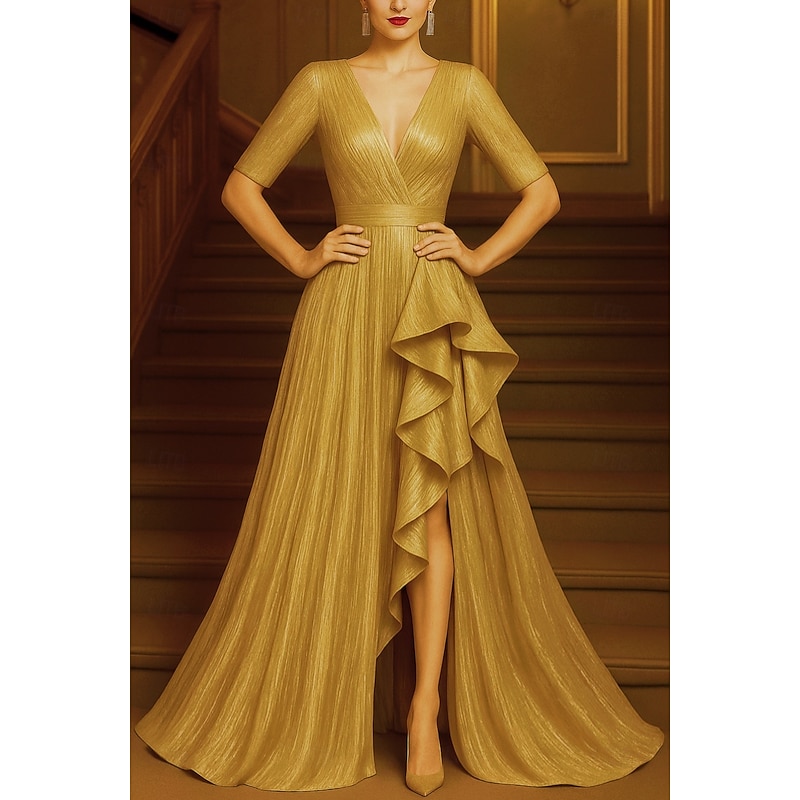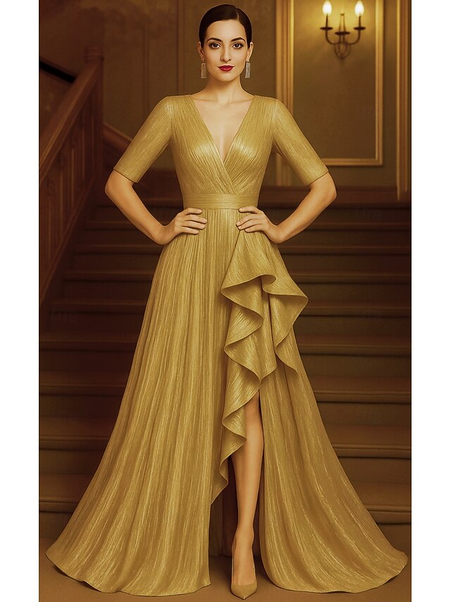$164.99 - Red Black A-Line Evening Gown Elegant Formal Dress Formal Wedding Floor Length Half Sleeve V Neck Champagne Mother Of the Bride Dress Lurex Fabric with Glitter Ruffles 2025 2025. Shop for cheap A-Line Evening Dresses online? Buy at lightinthebox.com on sale today!